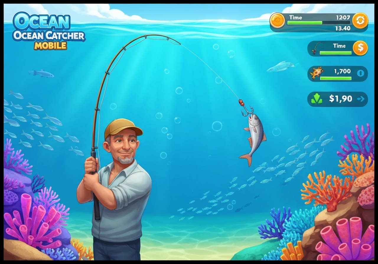 Ocean Catcher Mobile non è solo un gioco, ma un intero universo in cui ogni giocatore può sentire l'atmosfera della pesca reale. Avrai l'opportunità di esplorare bacini virtuali, raccogliere rari tipi di pesce, migliorare le attrezzature e competere con altri giocatori.
